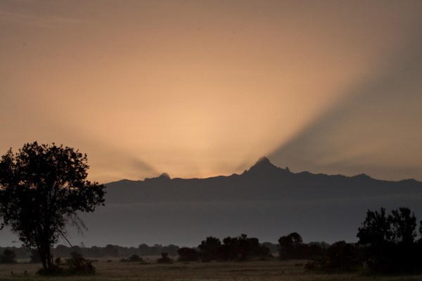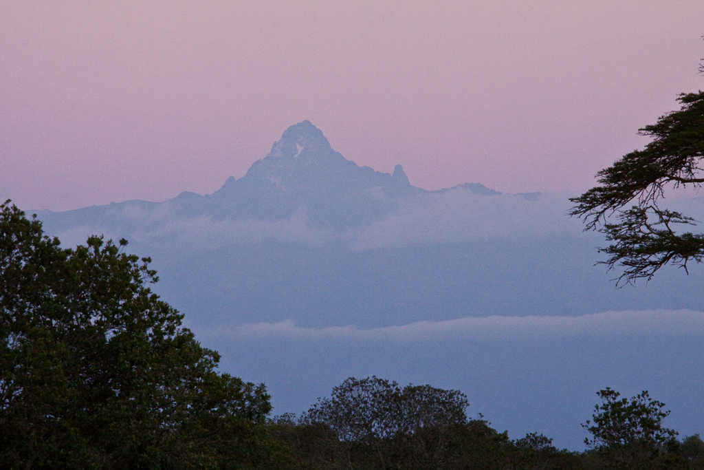 At sunset we were granted a rare view of a distant Mount Kenya in the evening mist.