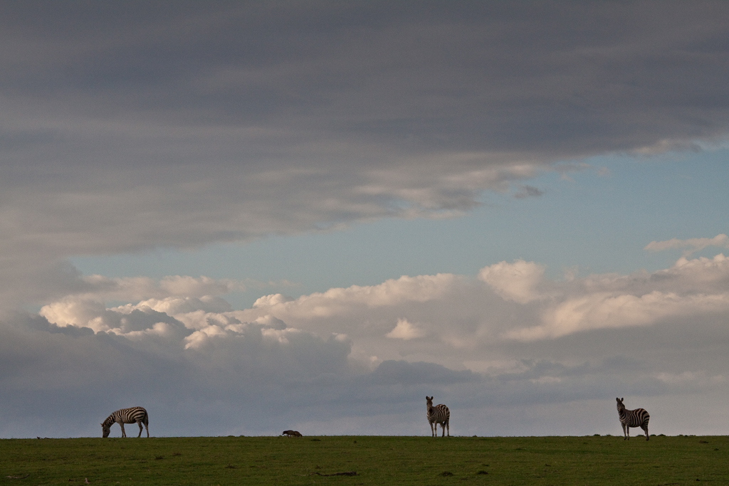The dramatic sky of the distant storm provided a beautiful backdrop to these zebras standing on one of the hills.