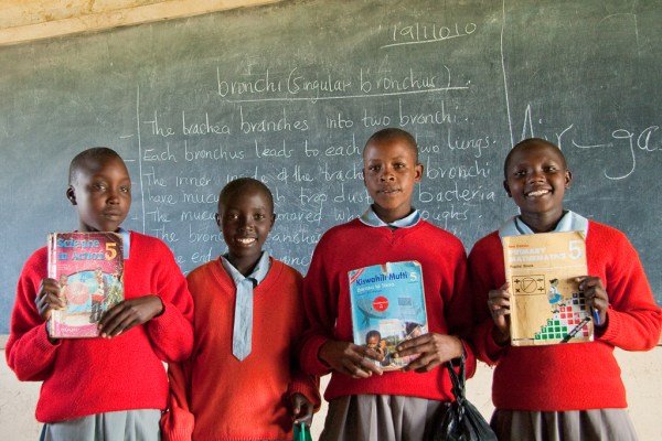 These children are very serious about their education and wanted to show off their schoolbooks and blackboard.