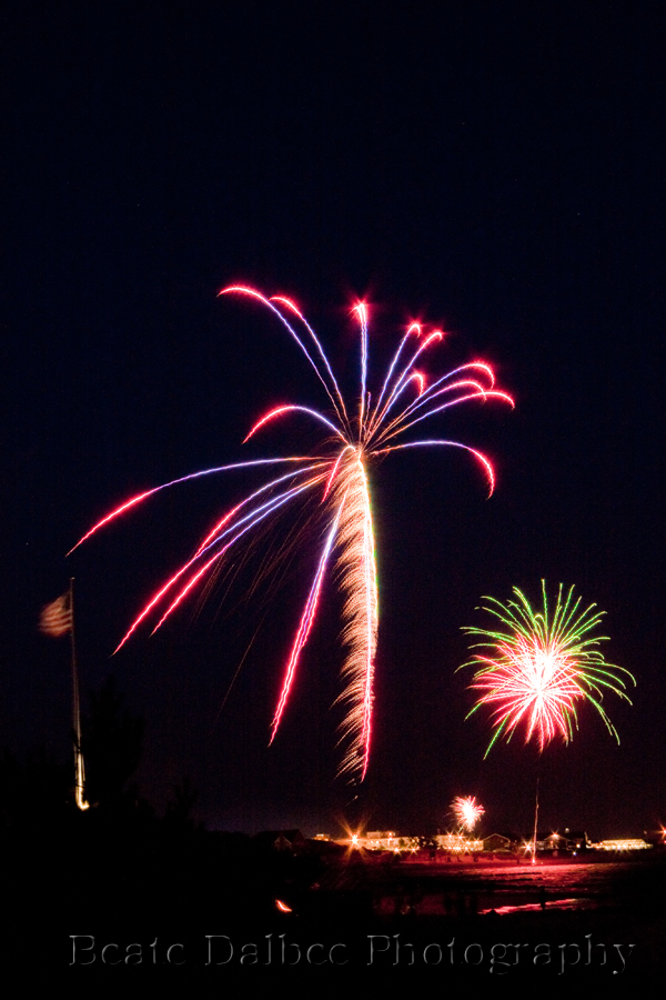 This year I was fortunate enough to spend 4th of July weekend with a very good friend of mine on Cape Cod. The weather was absolutely fantastic and we sat on the beach, enjoyed a nice bottle of wine and watched a seemingly endless display of fireworks along the coastline. Here is my attempt at capturing some red, white and blue.