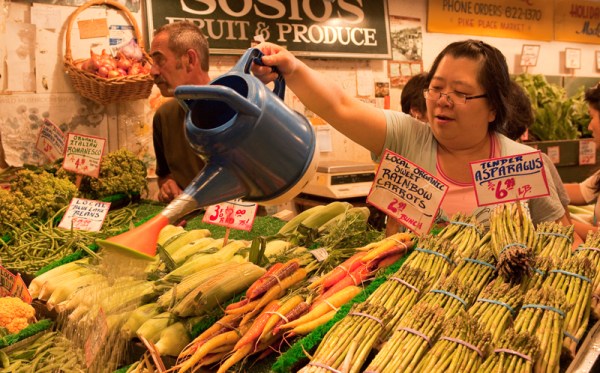 Pike Place market was founded over a century ago – in 1907 – when outraged citizens were fed up with paying price-gouging middlemen too much for their produce. City councilman Thomas Revelle proposed a public market where farmers and consumers could meet directly. Today Pike Place market is known as America’s premier farmer’s market. I  enjoyed watching the vendors selling and caring for their high quality products.