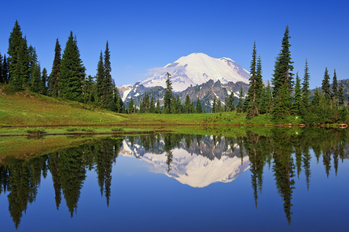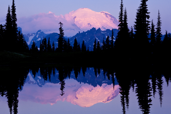 After spending the early morning hours photographing at Reflection Lake at Mt. Rainier a couple of weeks ago, my friend Vicki Braden and I decided to head to Tipsoo Lake in the hope of catching a nice reflection of the mountain there. When we arrived the water was still calm enough to offer a nice picture.