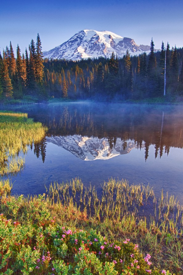 I recently purchased the complete edition of the Nik Software which also included their new Nik HDR Efex Pro. On my visit to Mr. Rainier the beginning of August I had made three different exposures of this image at Reflection Lake. The perfect opportunity to give this software a try. I have never used any HDR software before but I must say that this one seemed very easy to use and yields a very realistic image.