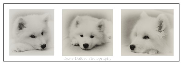 I work with dogs several days a week and when this 9 week old Samoyed puppy walked in, I just knew I had to photograph it. Fortunately for me, it was just the best model anyone could wish for. It patiently laid down on the couch while I was taking pictures. What more can you ask for? It just does not get much cuter. (You can click on the image to see a larger version)
