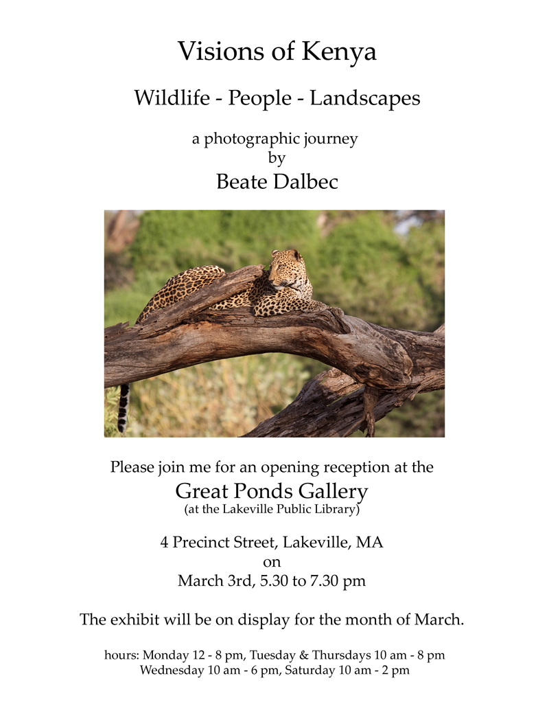 I am very excited about my upcoming Kenya exhibit (and I admit a bit nervous too)! If you are in the area, I would love to invite you to attend the opening on March 3rd. The exhibit will be on display for the month of March. A portion of any sale will be donated to Give International to help fund projects in Kenya.