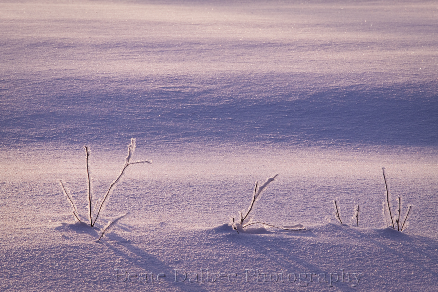 Winter really is a great season for a minimalistic approach to photography. The snow can provide a nice even backdrop for simple scenes like this. What enhances this image even more was the beautiful early morning light which turned the snow into this lovely color.