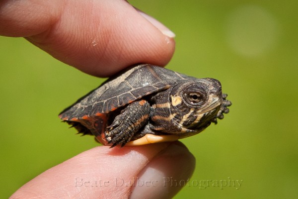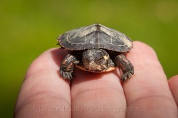 Yesterday afternoon, while taking my dog for a walk, I spotted what looked at first glance like a moving pebble. A moving pebble???? I decided to take a closer look at it. The pebble turned out to be a tiny painted turtle. Just how tiny? I opted to interrupt his journey for a minute and take a couple of pictures of it on my hand to demonstrate the scale.